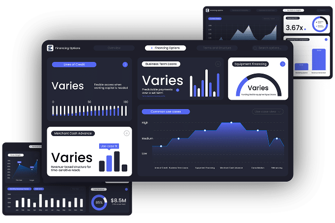 We offer lines of credit, equipment financing, business term loans, merchant cash advance, consolidation, and refinancing. Availability depends on your business profile and provider criteria.